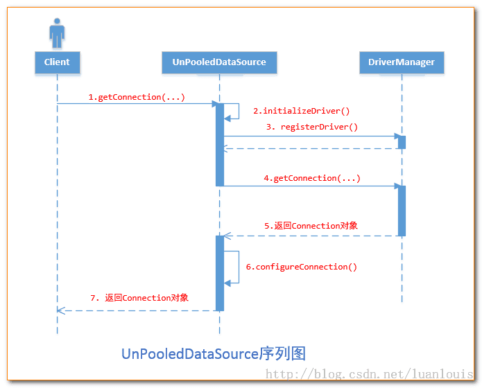 当 <dataSource>的type属性被配置成了”UNPOOLED”,MyBatis首先会实例化一个UnpooledDataSourceFactory工厂实例,然后通过.getDataSource()方法返回一个UnpooledDataSource实例对象引用,我们假定为dataSource。