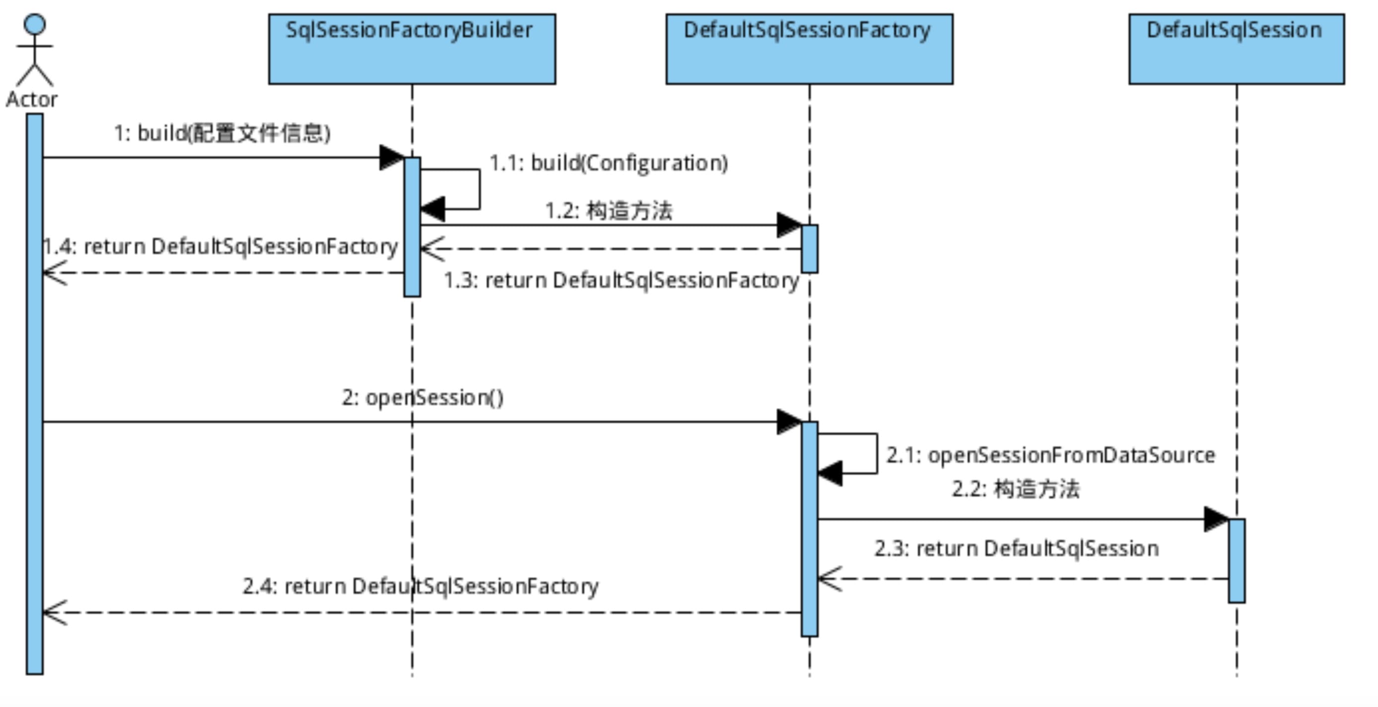 可以看出,创建sqlsession经过了以下几个主要步骤: