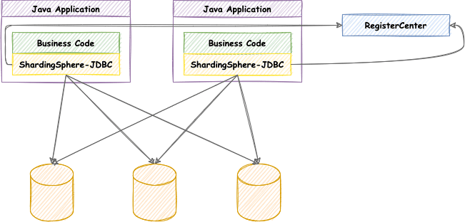 - ShardingSphere-JDBC 采用无中心化架构,与应用程序共享资源,适用于 Java 开发的高性能的轻量级 OLTP 应用;
