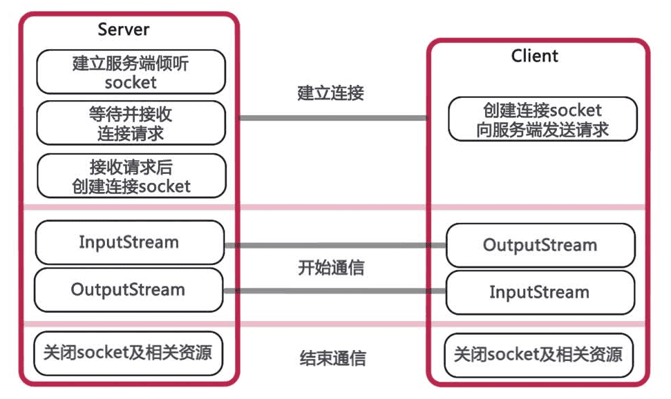 ServerSocket 和 Socket 不同,服务器套接字的角色是等待来自客户端的连接请求。一旦服务器套接字获得一个连接请求,它创建一个 Socket 实例来与客户端进行通信。