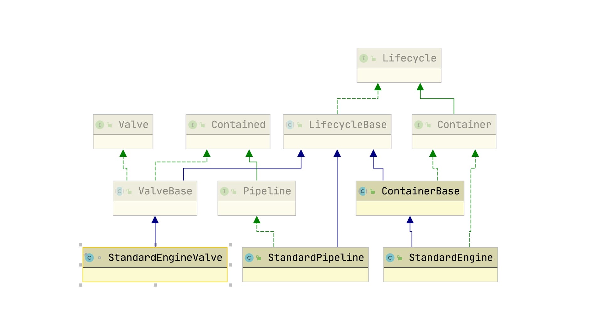 由于Valve也是组件,需要生命周期管理,所以实现LifecycleMBeanBase,同时集成Contained和Valve