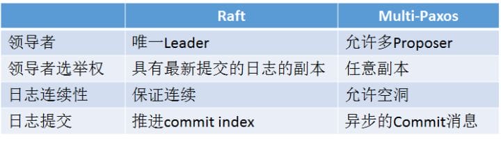 Raft与Multi-Paxos都是基于领导者的一致性算法,乍一看有很多地方相同,下面总结一下Raft与Multi-Paxos的异同。