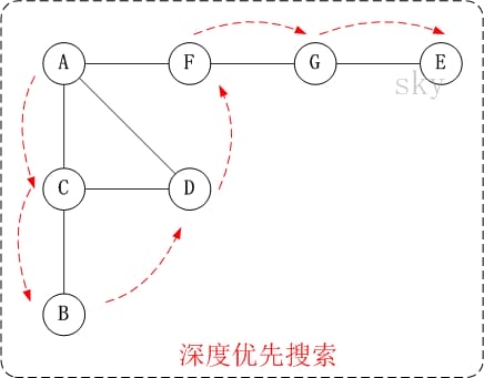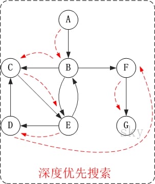它的思想是: 从图中某顶点v出发,在访问了v之后依次访问v的各个未曾访问过的邻接点,然后分别从这些邻接点出发依次访问它们的邻接点,并使得“先被访问的顶点的邻接点先于后被访问的顶点的邻接点被访问,直至图中所有已被访问的顶点的邻接点都被访问到。如果此时图中尚有顶点未被访问,则需要另选一个未曾被访问过的顶点作为新的起始点,重复上述过程,直至图中所有顶点都被访问到为止。