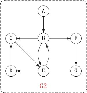 第4步: 依次访问D,G。 在访问完C,E,F之后,再依次访问它们的出边的另一个顶点。还是按照C,E,F的顺序访问,C的已经全部访问过了,那么就只剩下E,F;先访问E的邻接点D,再访问F的邻接点G。