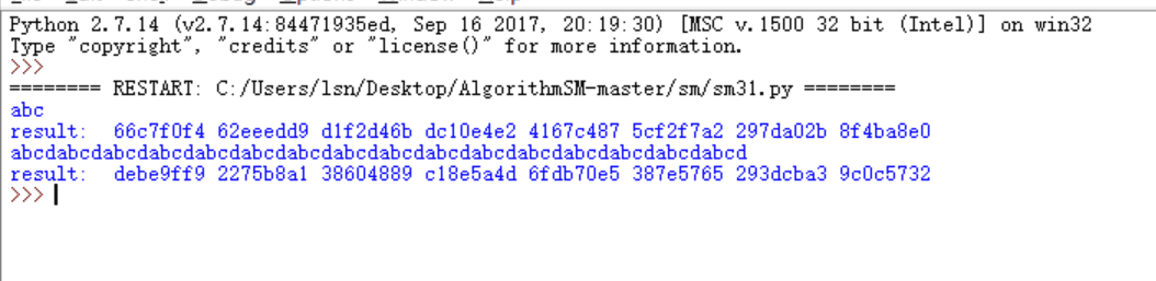 下面的是实现了SM3的标准输出