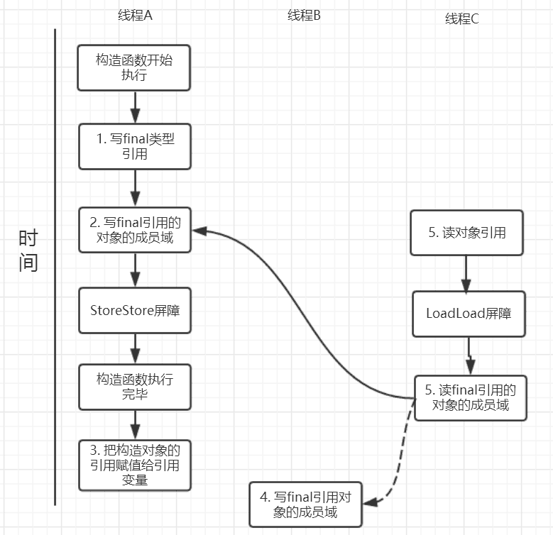 额外增加约束:禁止在构造函数对一个final修饰的对象的成员域的写入与随后将这个被构造的对象的引用赋值给引用变量 重排序