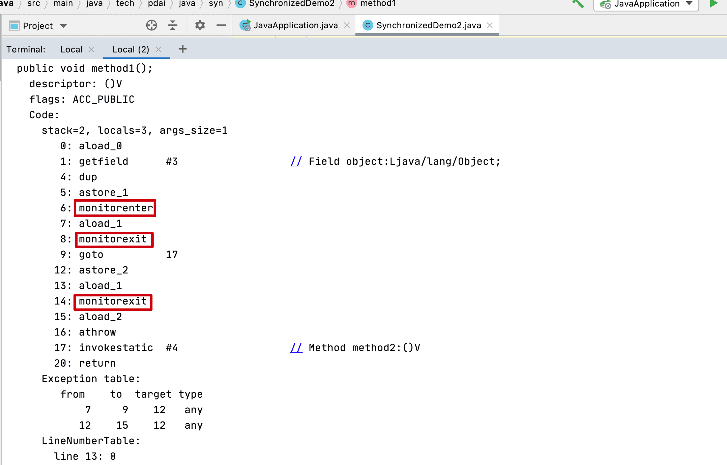 >javap -verbose SynchronizedDemo2.class得到如下的信息: