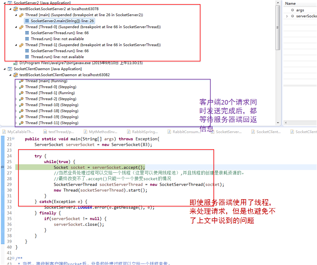 //最终改变不了.accept()只能一个一个接受socket的情况,并且被阻塞的情况