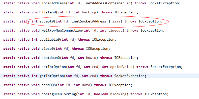 如果操作系统没有发现有套接字从指定的端口X来,那么操作系统就会等待。这样serverSocket.accept()方法就会一直等待。这就是为什么accept()方法为什么会阻塞: 它内部的实现是使用的操作系统级别的同步IO。