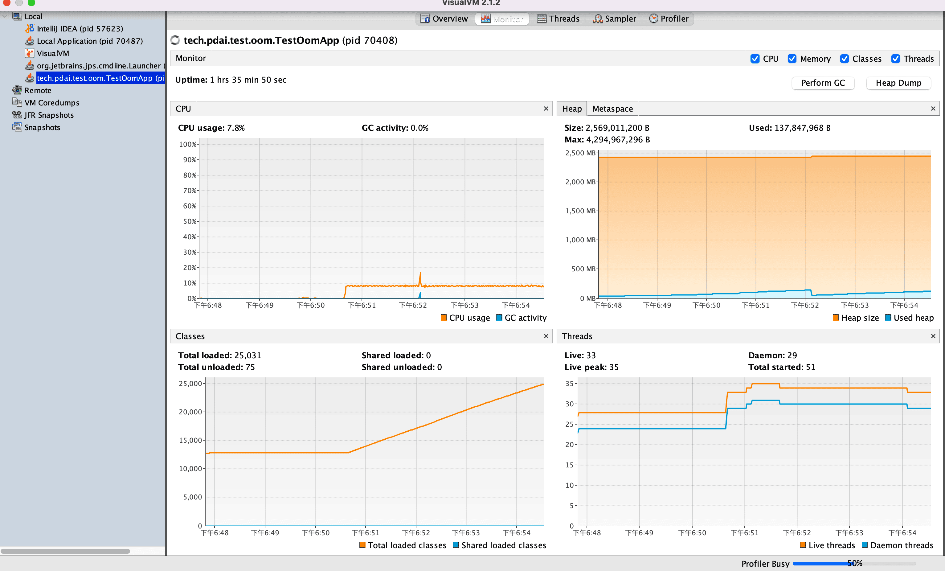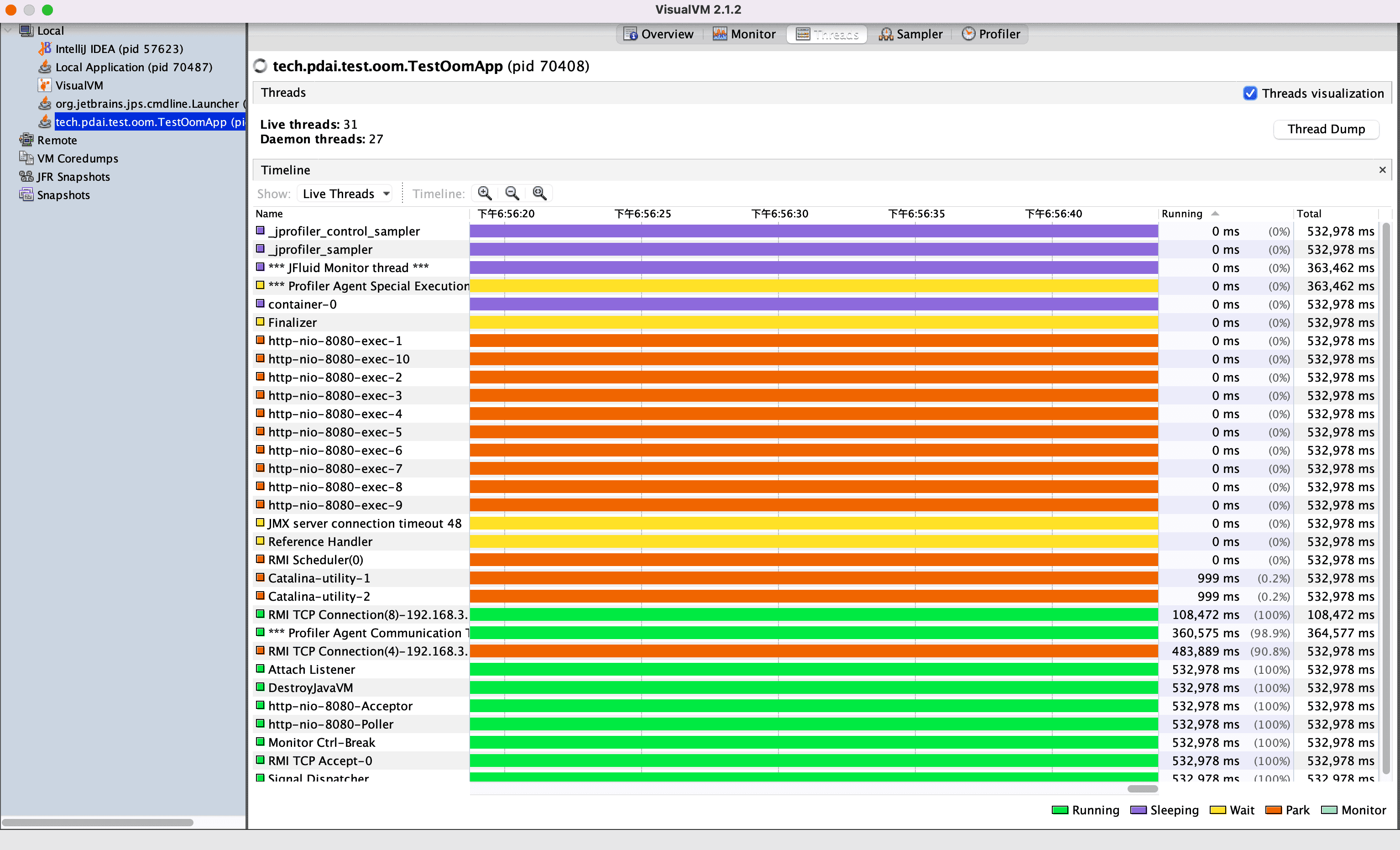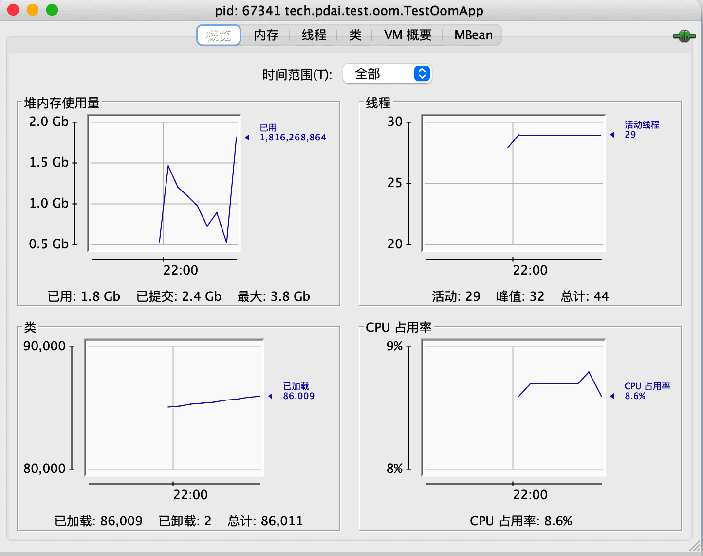 VisualVM 是一款免费的,集成了多个 JDK 命令行工具的可视化工具,它能为您提供强大的分析能力,对 Java 应用程序做性能分析和调优。这些功能包括生成和分析海量数据、跟踪内存泄漏、监控垃圾回收器、执行内存和 CPU 分析,同时它还支持在 MBeans 上进行浏览和操作。