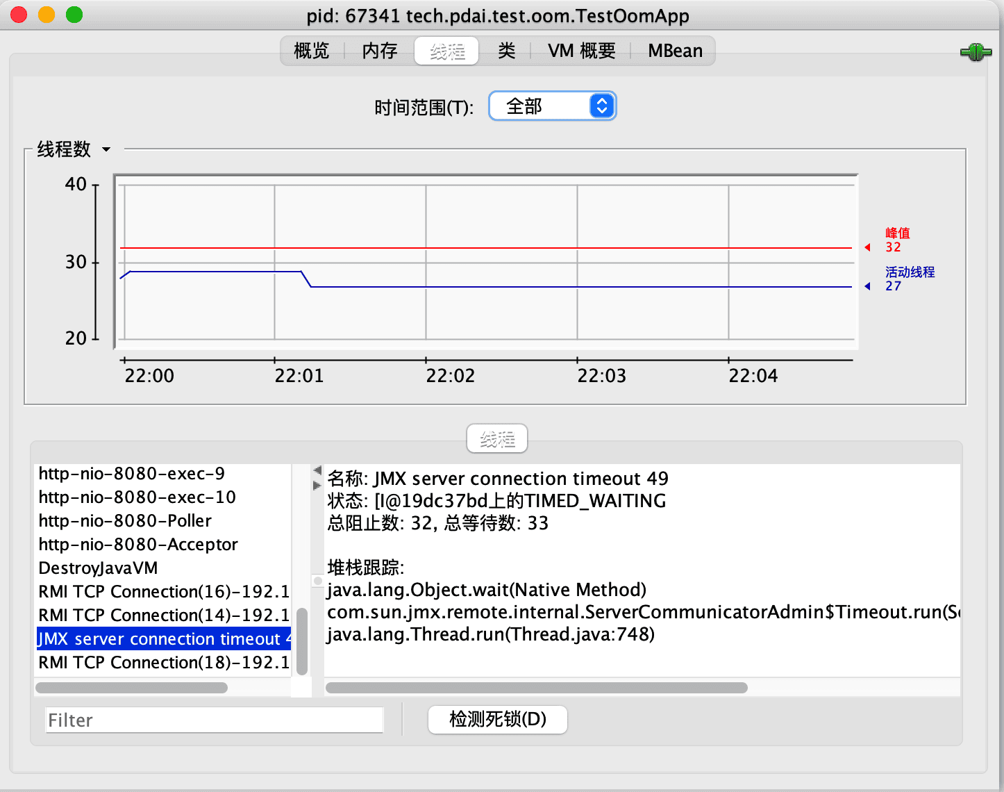 Jconsole (Java Monitoring and Management Console),JDK自带的基于JMX的可视化监视、管理工具。 官方文档可以参考这里在新窗口打开