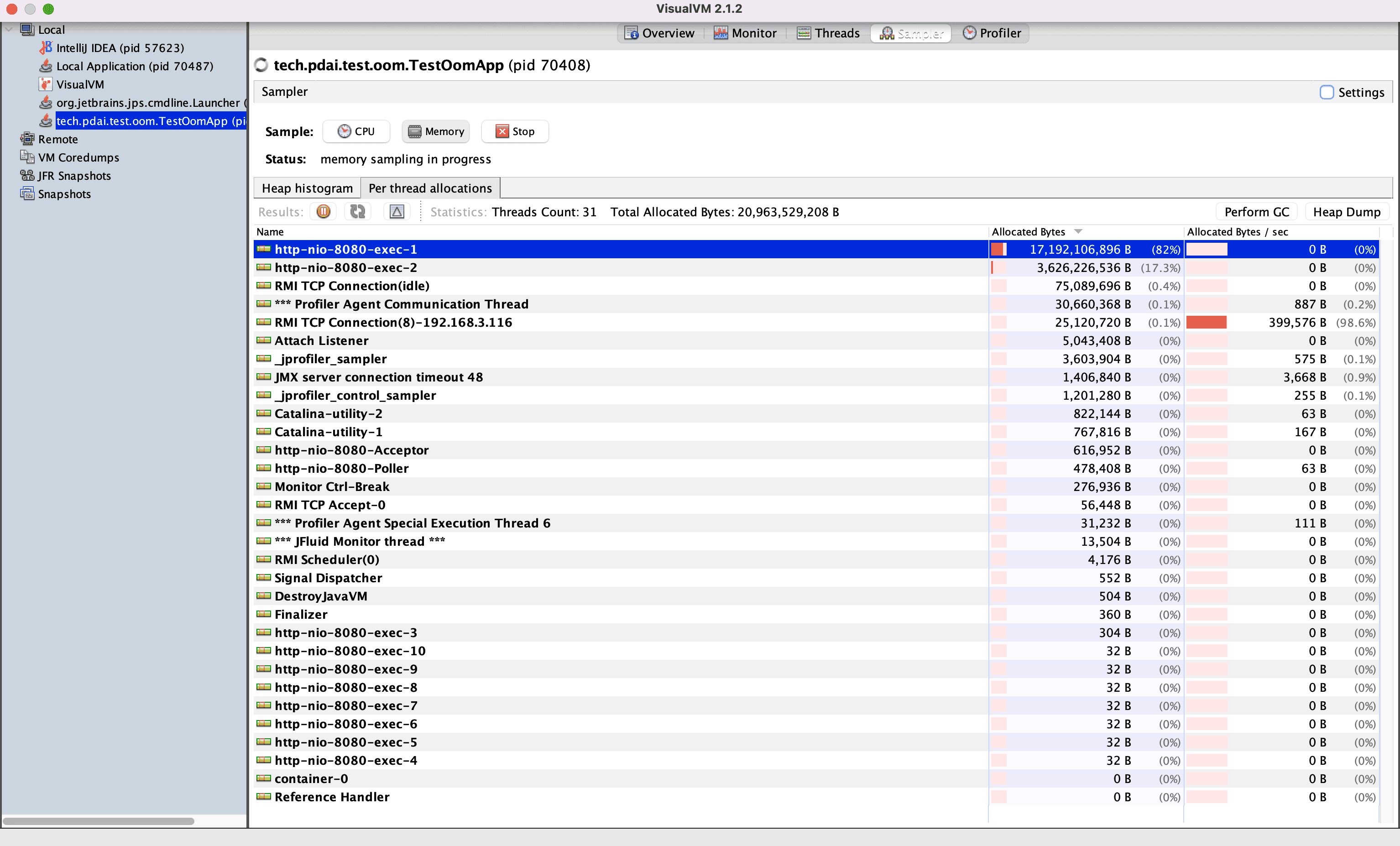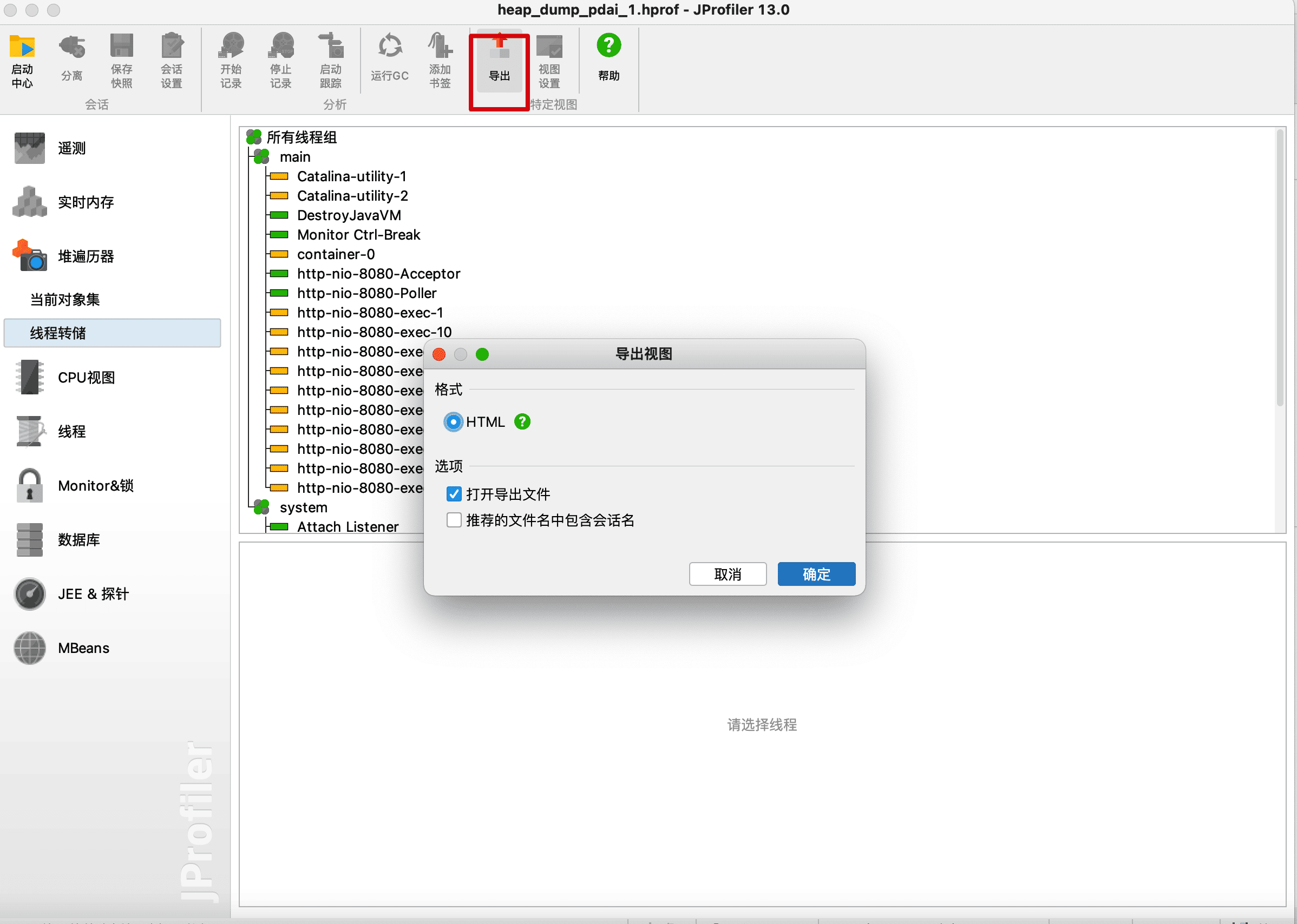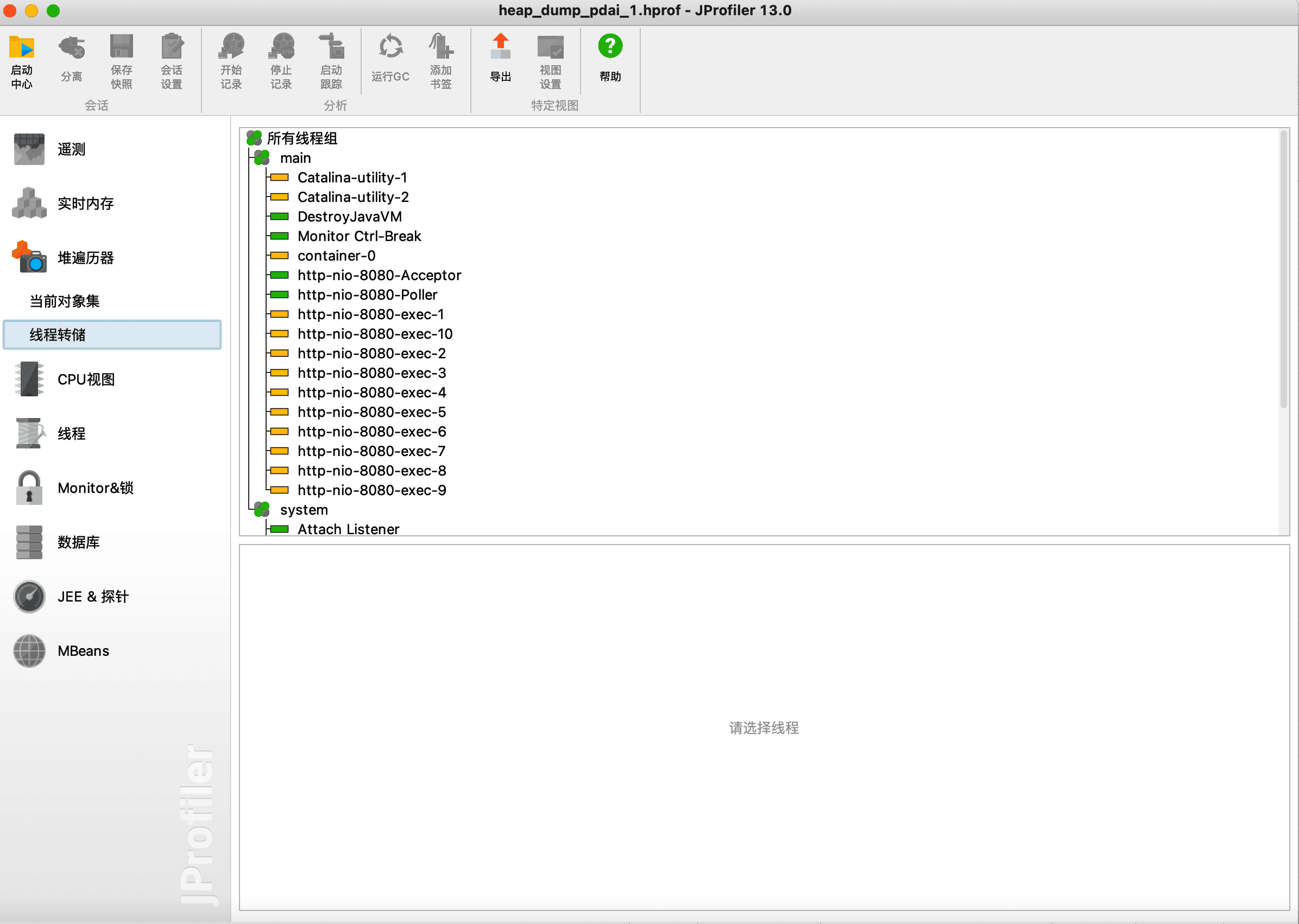 可以列出那个线程,以及线程下面的那些对象占用的空间。