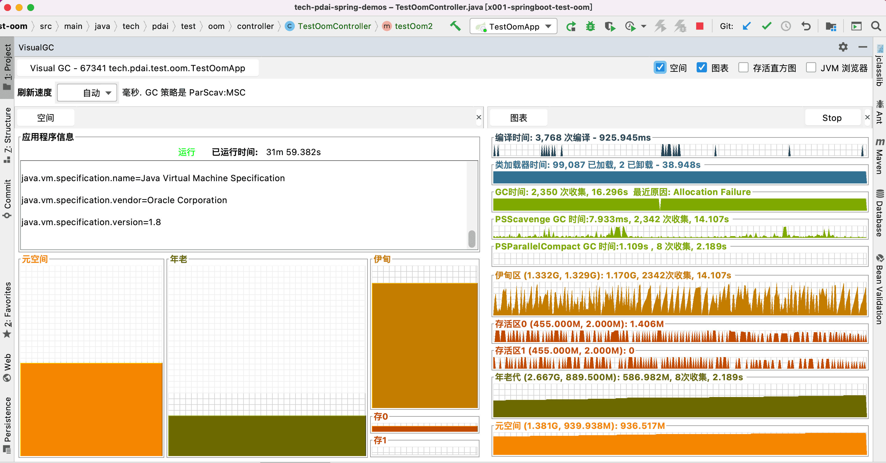比如我在IDEA中使用visual GC 插件来看GC状况。