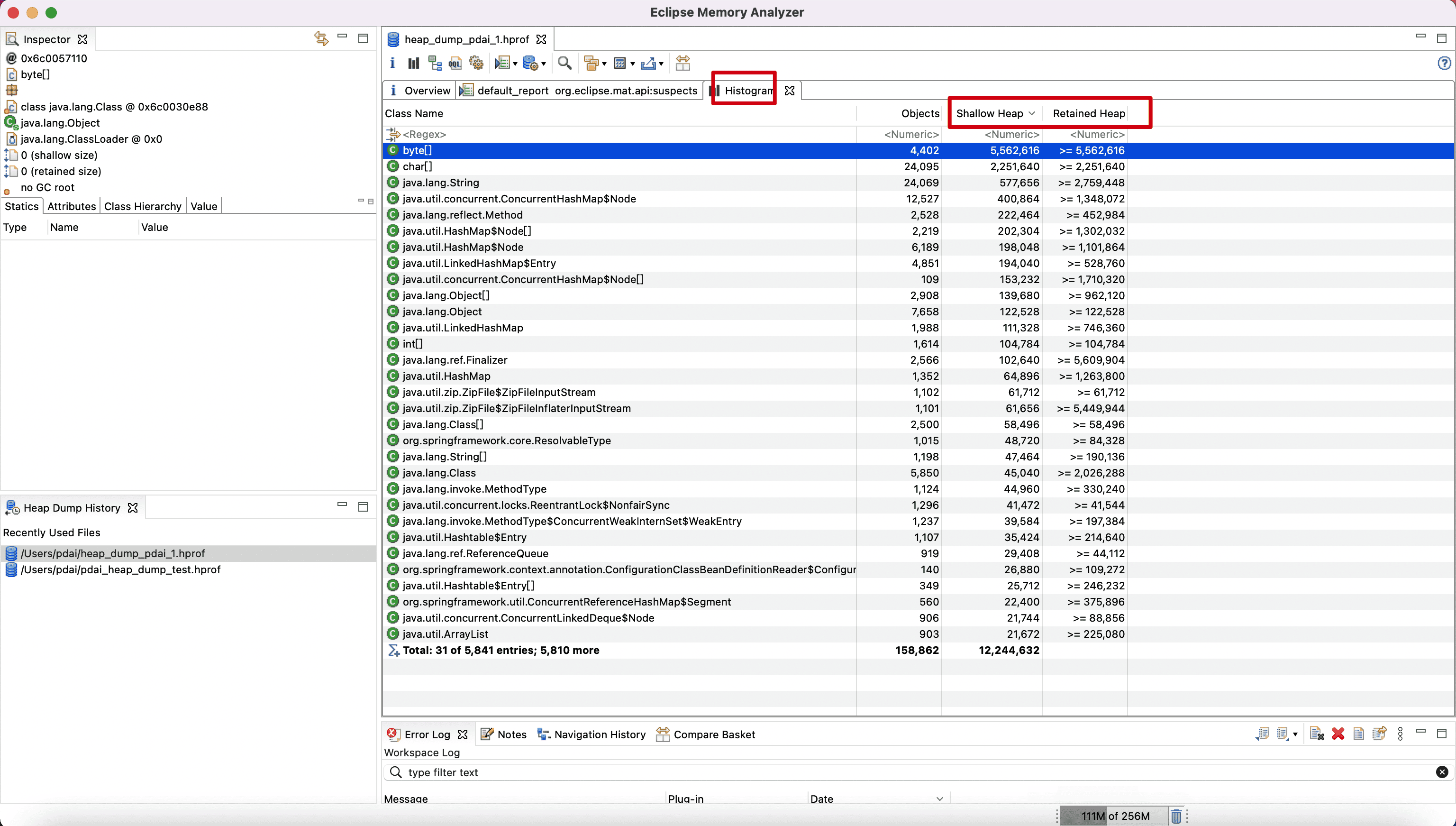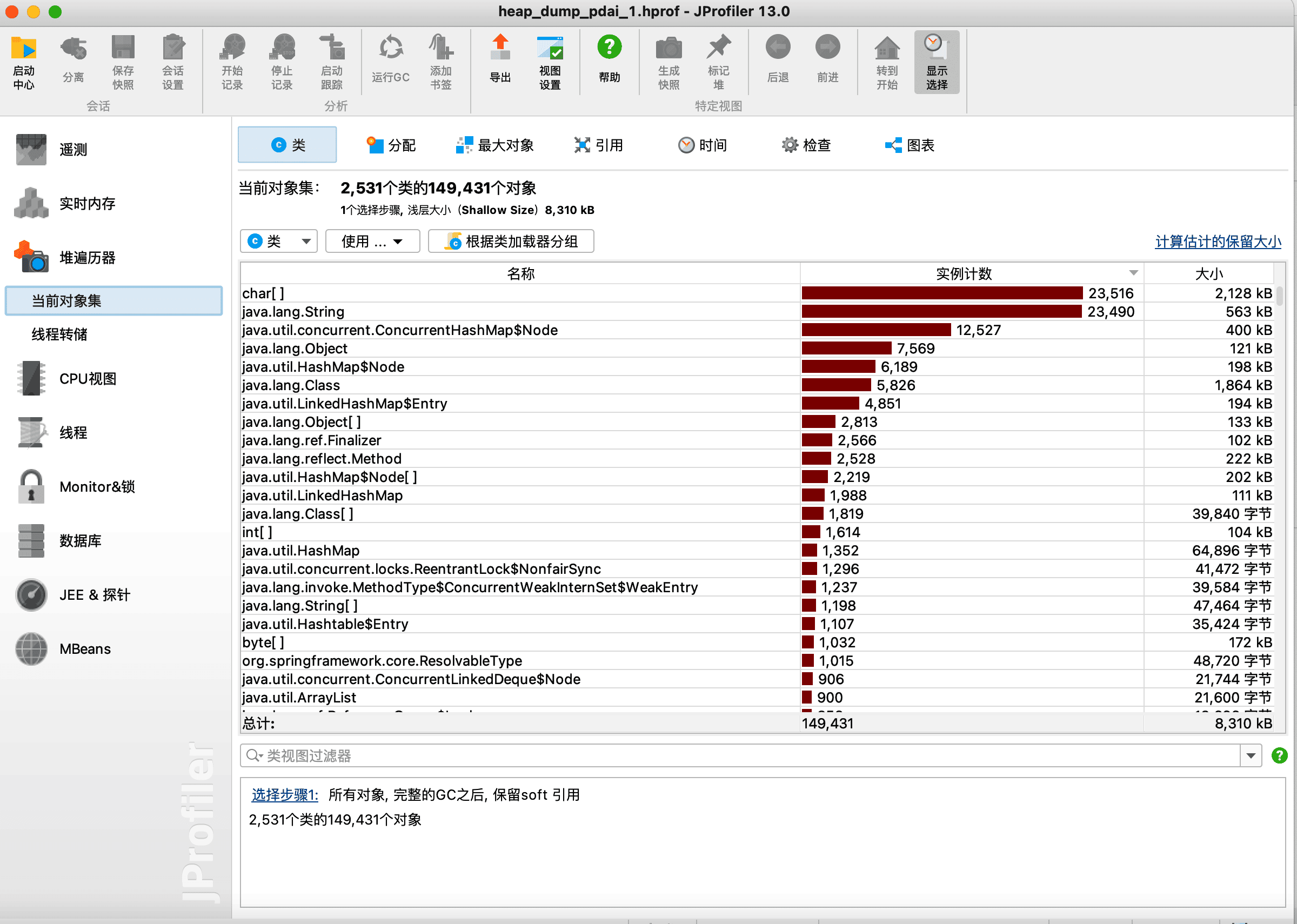 - Retained Heap :是shallow Heap的总和,也就是该对象被GC之后所能回收到内存的总和