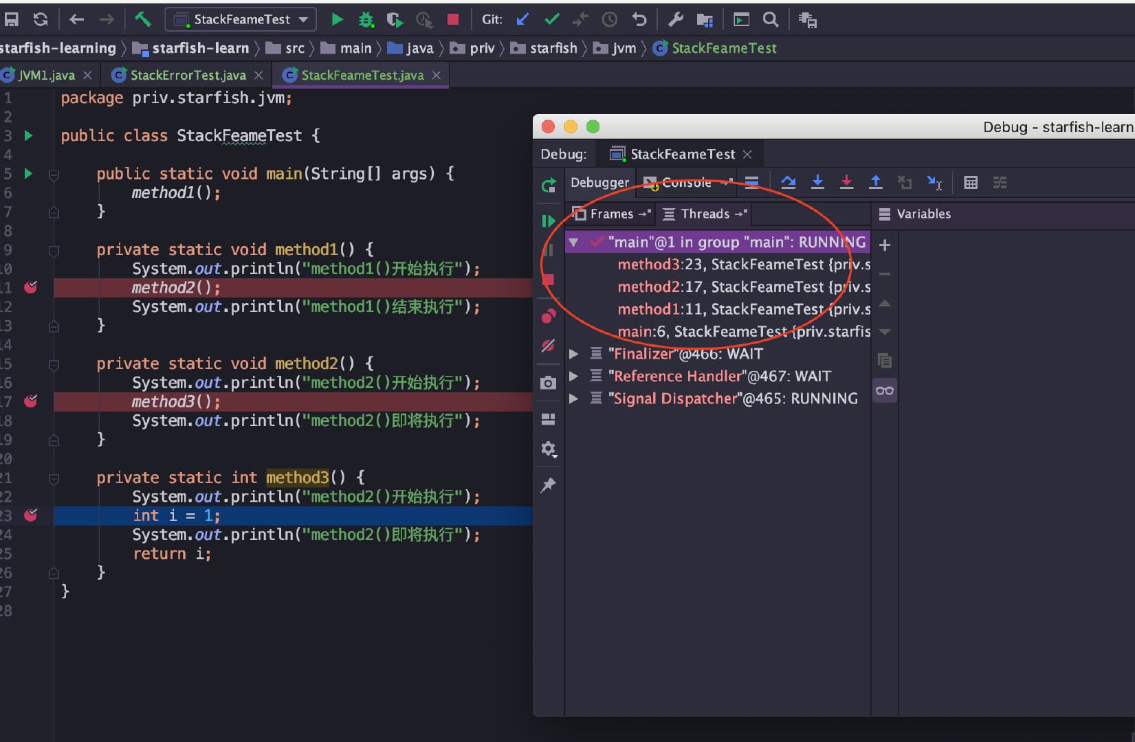 IDEA 在 debug 时候,可以在 debug 窗口看到 Frames 中各种方法的压栈和出栈情况