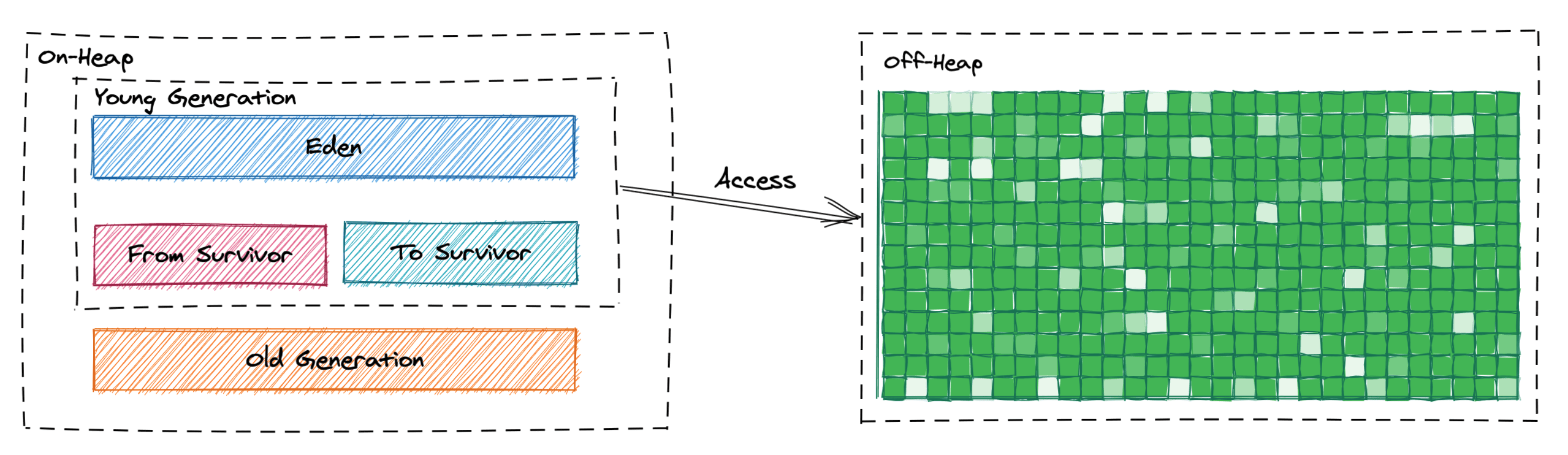 在实际的开发过程中,绝大多数的开发人员基本都不会直接与堆外内存打交道,但这并不代表你从未接触过堆外内存,像大家经常使用的诸如:RocketMQ、MapDB 等中间件产品底层实现都是基于堆外存储的,换句话说,我们几乎每天都在间接与堆外内存打交道。那么究竟为什么需要使用到堆外内存呢?简单来说,主要是出于以下 3 个方面的考虑: