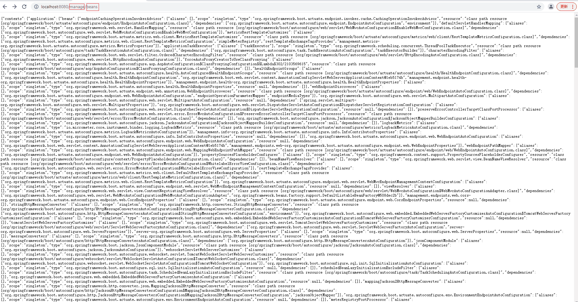 enabled: true上述配置只暴露info,health,env,beans四个endpoints, web通过可以/manage访问,