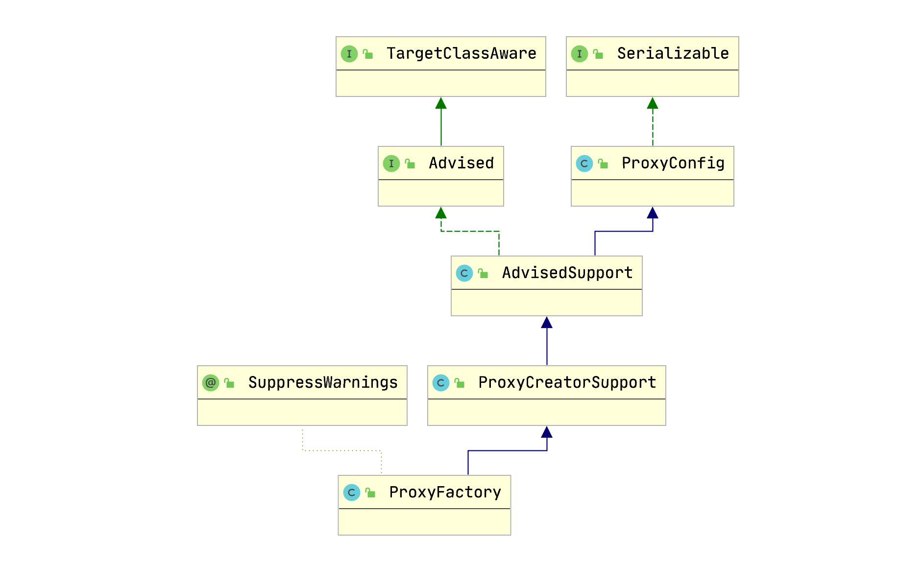 <aop:config proxy-target-class="true" />来配置的,表示优先使用cglib代理,默认是false; - hasNoUserSuppliedProxyInterfaces(config) 表示是否目标类实现了接口