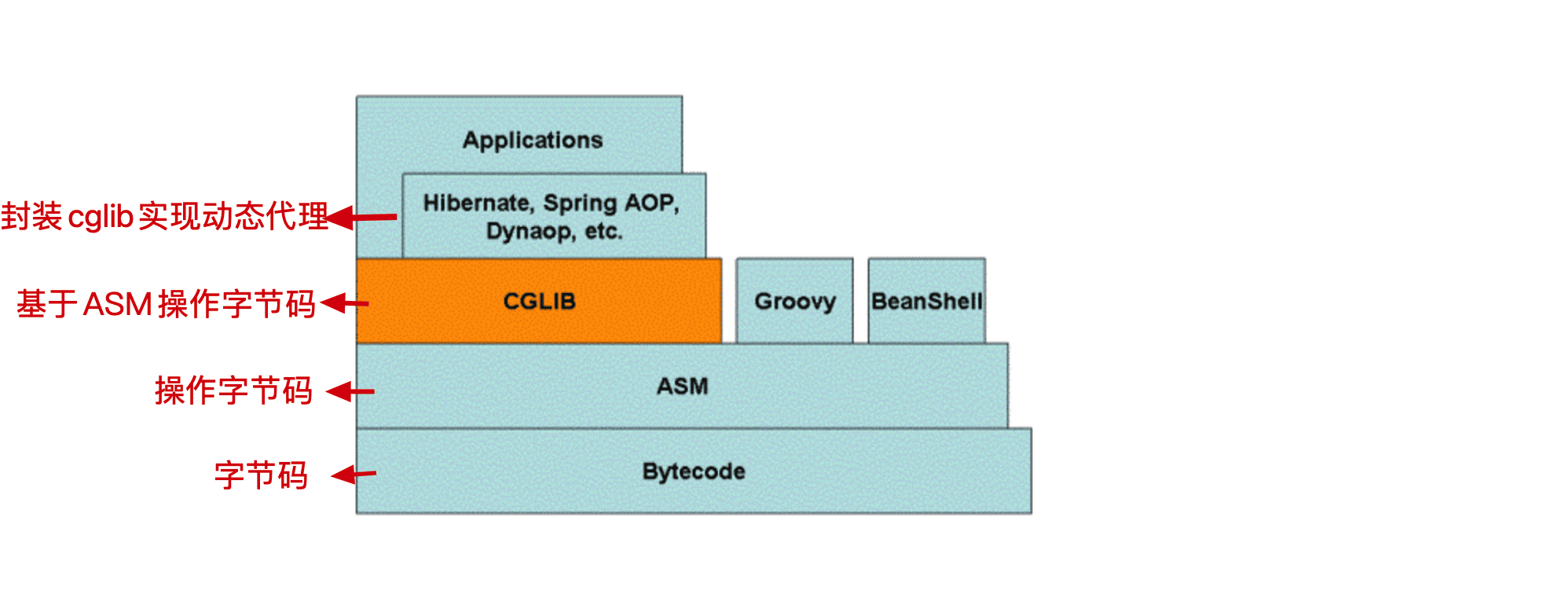 - cglib基于ASM字节码工具操作字节码(即动态生成代理,对方法进行增强)