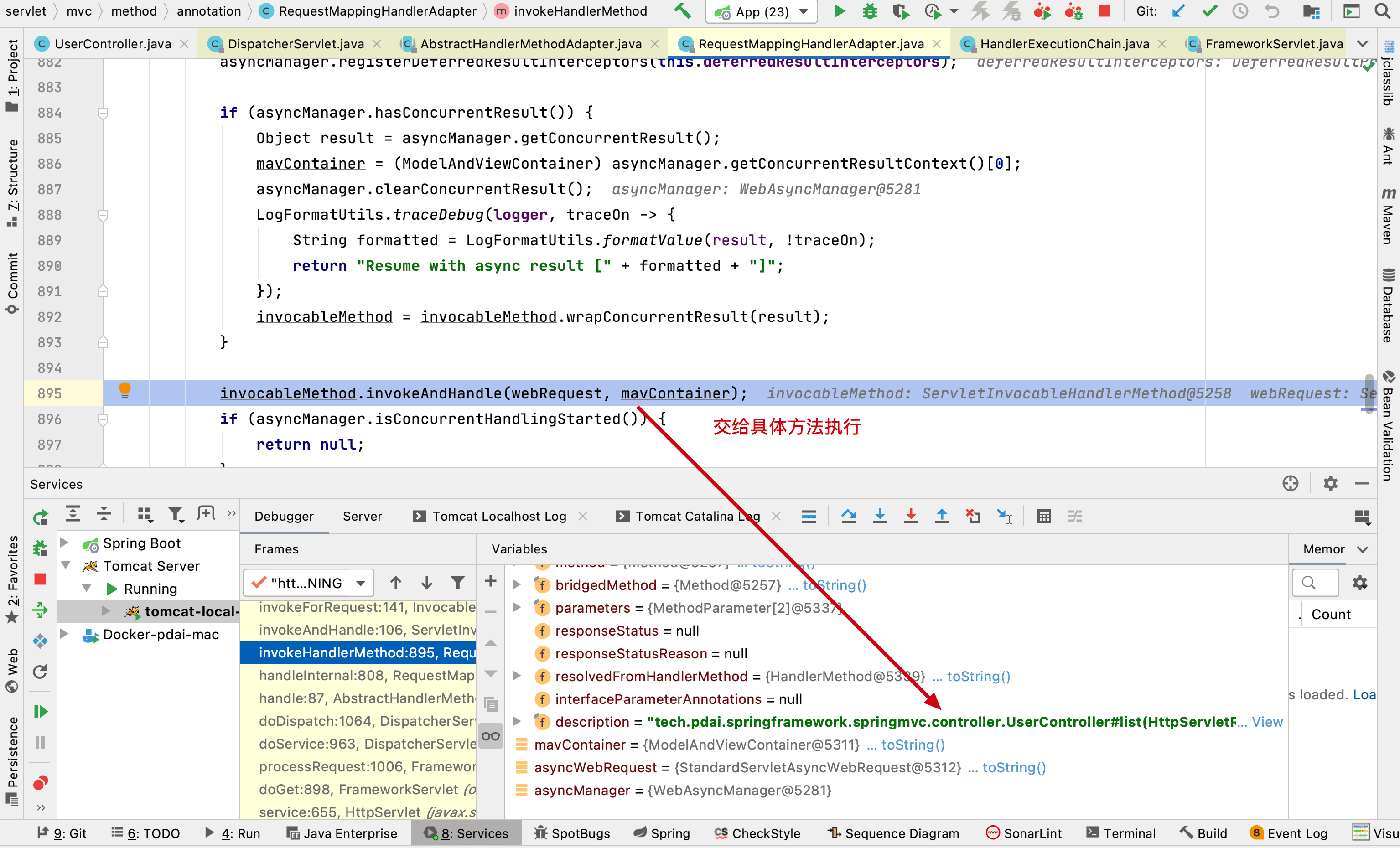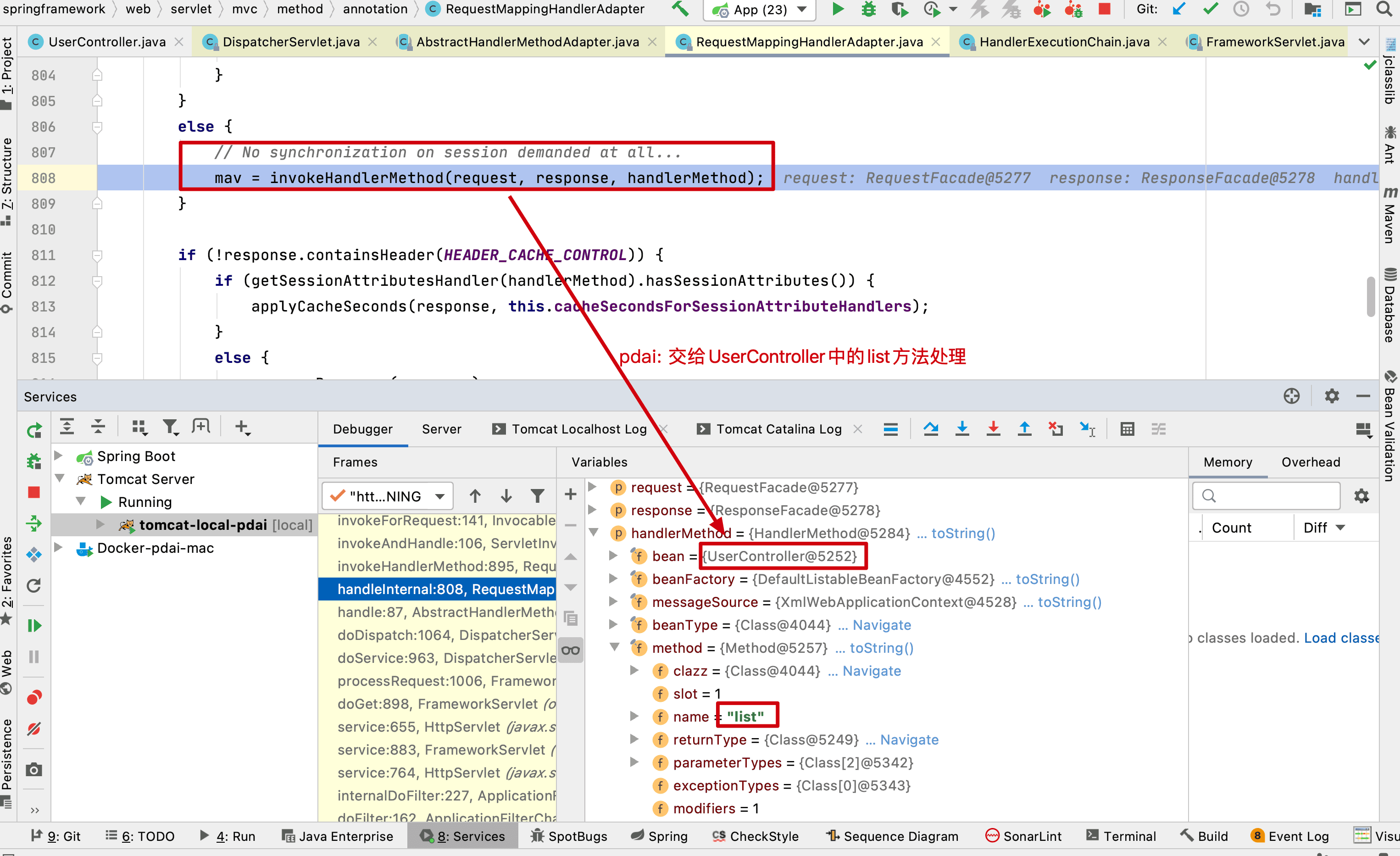 }invokeAndHandle交给UserController中具体执行list方法执行