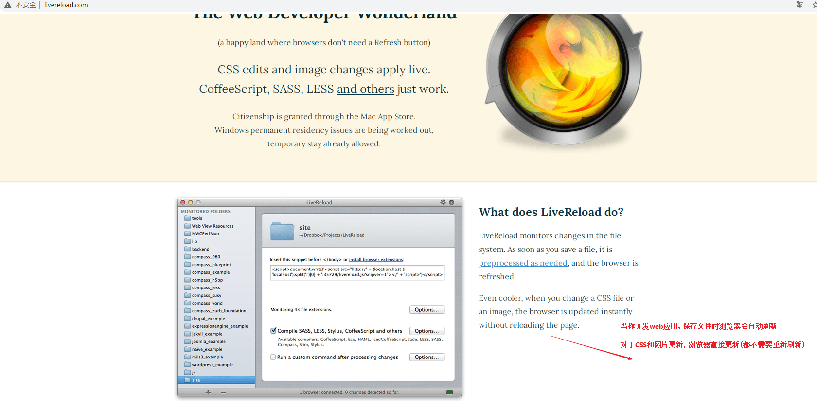 spring-boot-devtools模块包含嵌入式LiveReload服务器,可以在资源更改时用于触发浏览器刷新。 LiveReload浏览器扩展程序支持Chrome,Firefox和Safari,你可以从livereload.com免费下载。