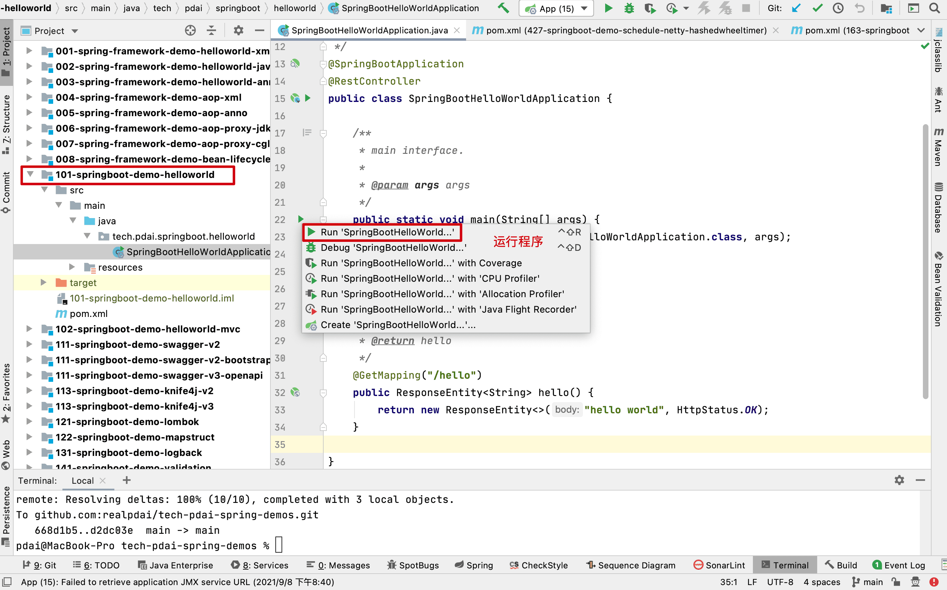 SpringApplication.run(SpringBootHelloWorldApplication.class, args);