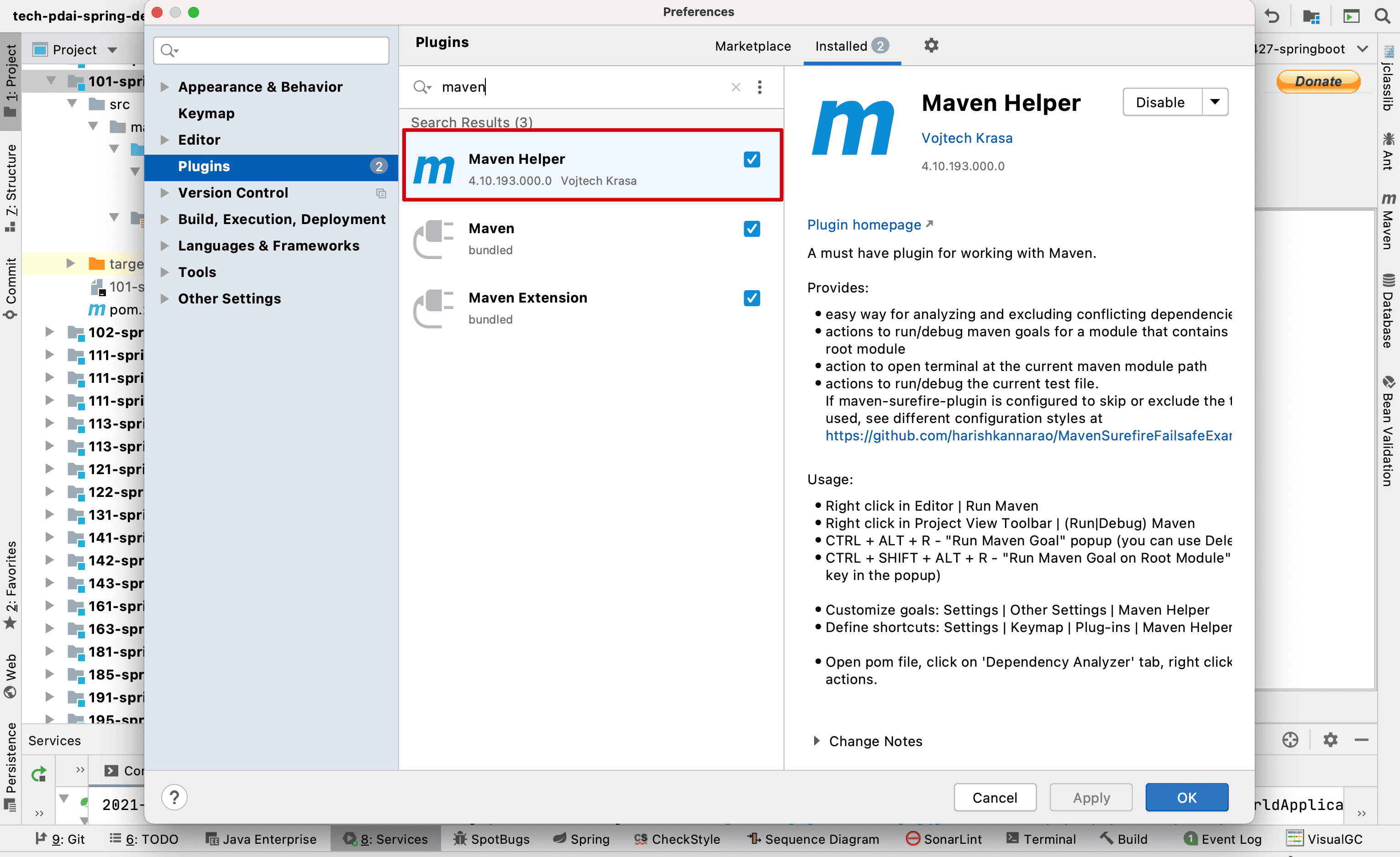 我们安装Maven Helper的插件,用来查看spring-boot-starter-web模块的依赖