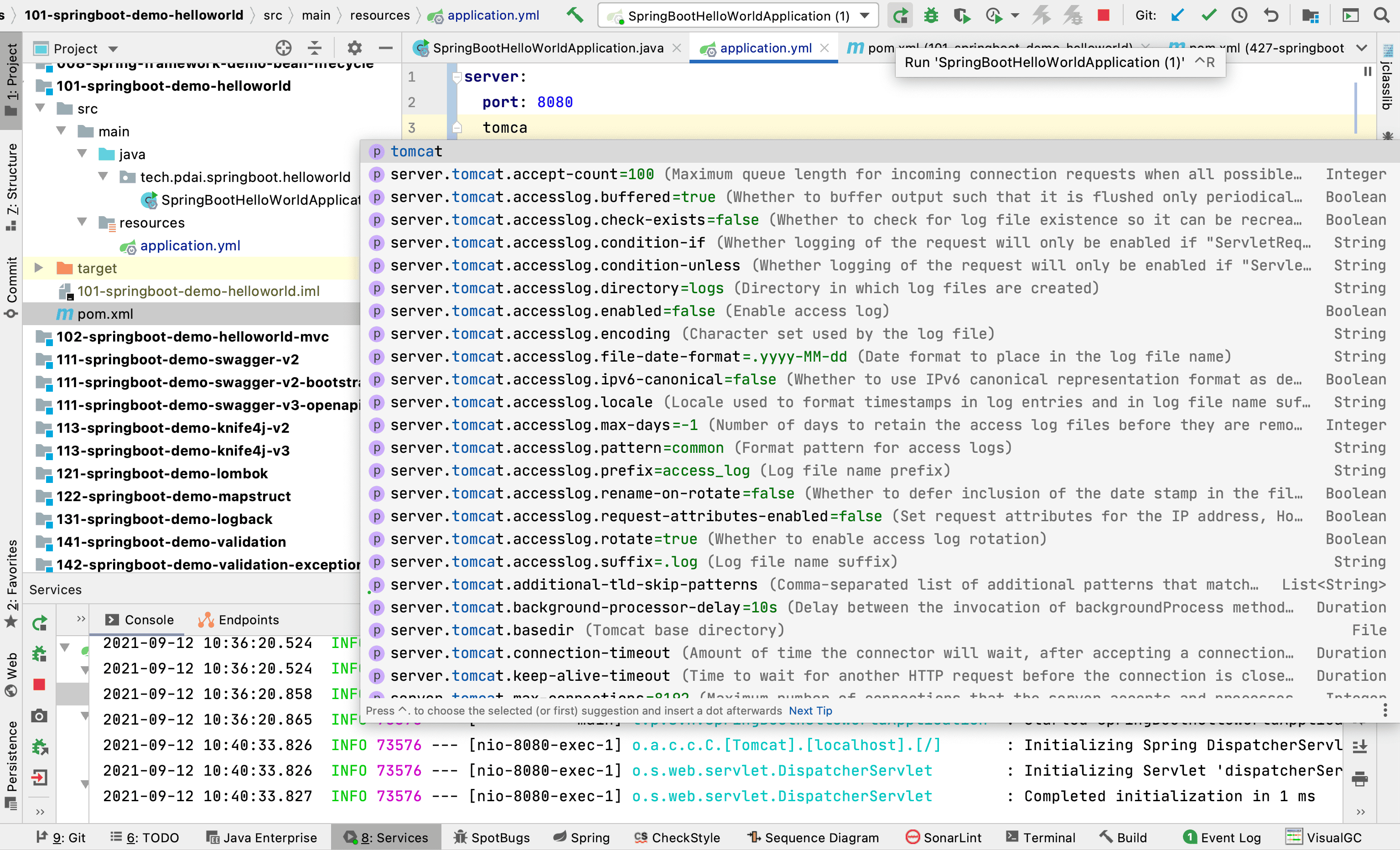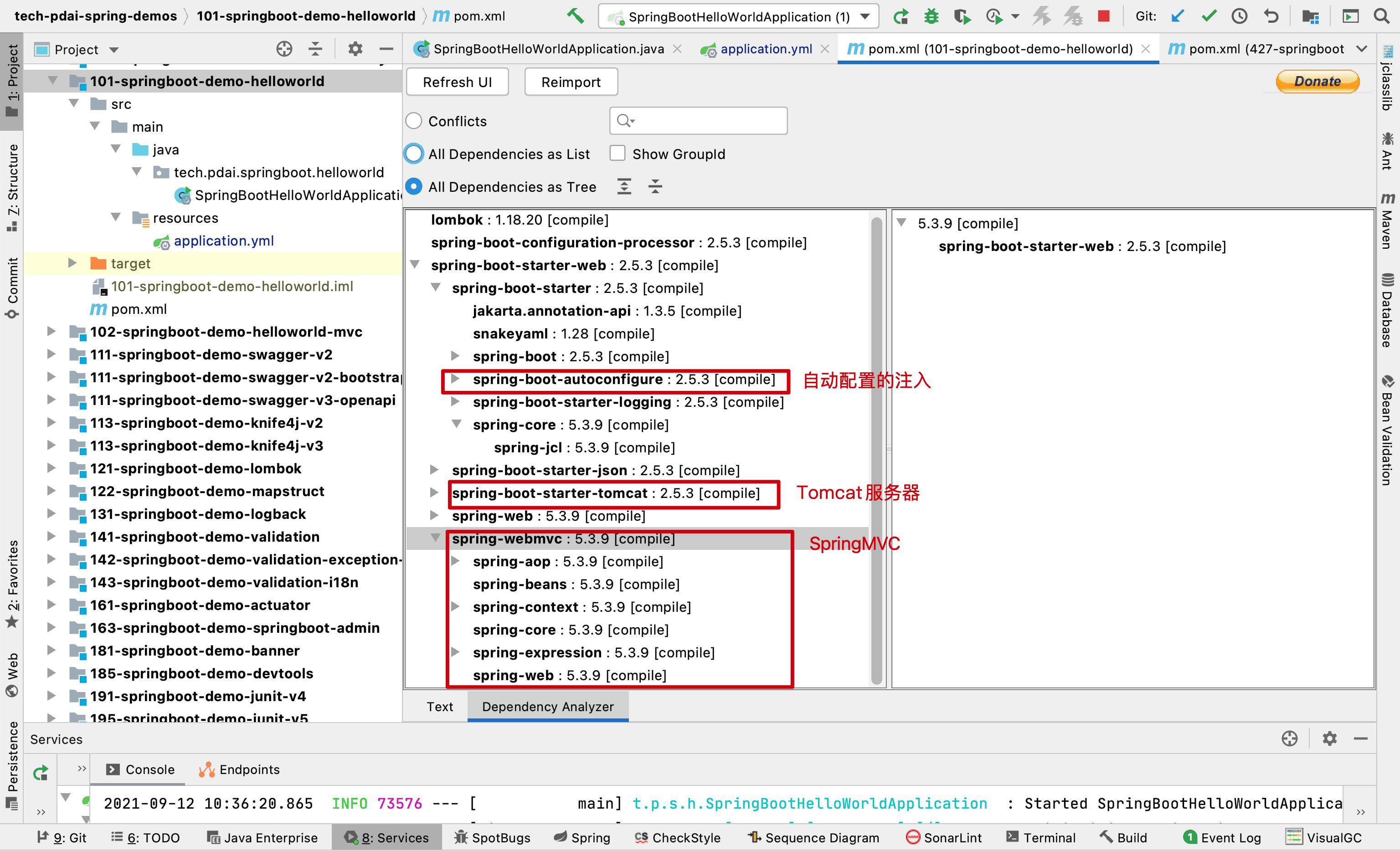 </dependency>它内嵌了Tomcat并且提供了默认的配置,比如默认端口是8080.