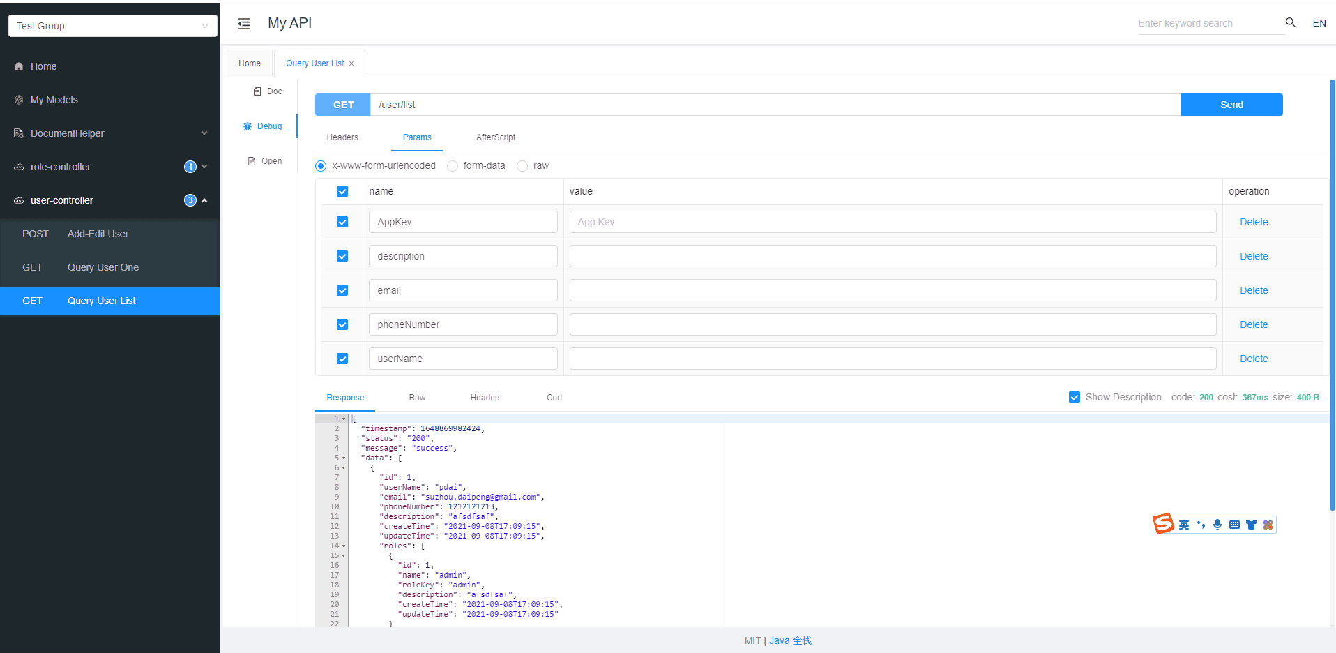 original SQL: select u.id, u.password, u.user_name, u.email, u.phone_number, u.description, u.create_time, u.update_time, r.name, r.role_key, r.description, r.create_time, r.update_time